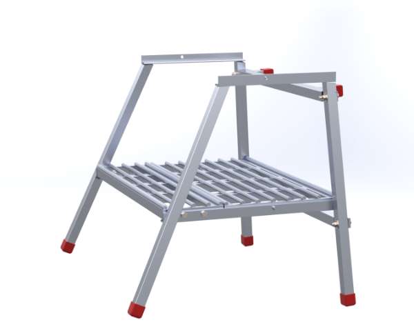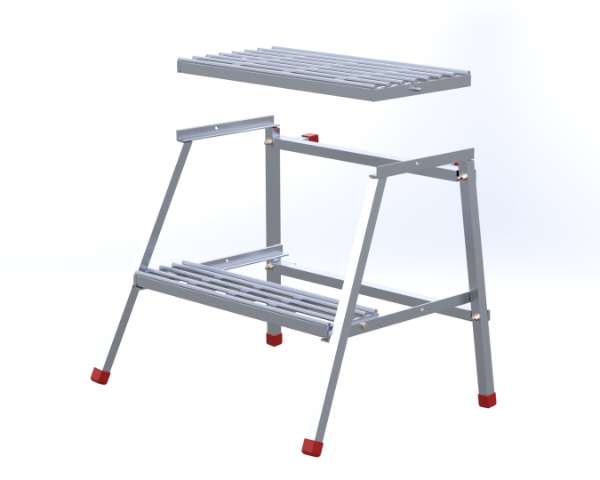 Top step can be moved to bottom step for work platform with convenient spring pin. Non marking rubber caps prevent wall scuffs