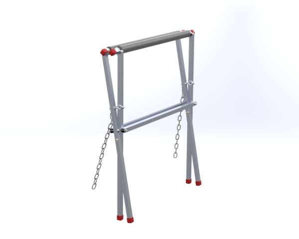 Portable table offers adjustable height and width. Collapses flat for storage and has replaceable foam sleeves.