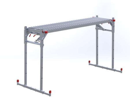 The WPA5 Work platform has a durable tread rod surface for grip. Height easily adjusts from 11" - 36" with spring pins. Legs fold under for storage. Non marking rubber caps prevent wall scuffs.