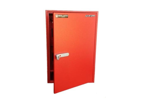 The Goliath PG1-A Paint Gun Locker is a keyless entry security cabinet for storage of valuable paint guns and supporting equipment. It can be mounted on the wall or inside the paint mixing room,