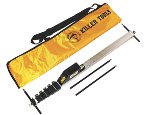 - Telescoping aluminum tram gauge with steel locking screws and viewing window