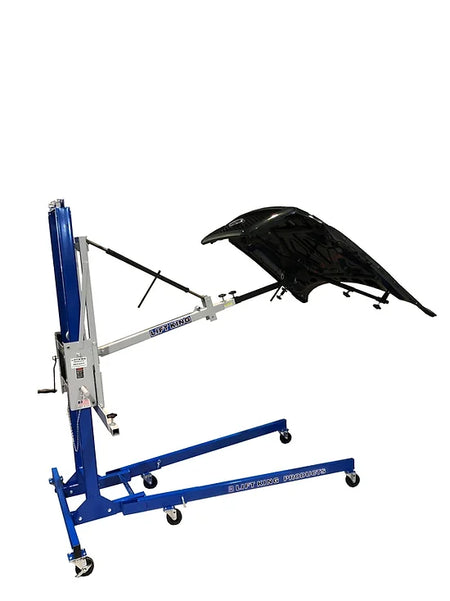 The Lift King Hood Attachment connects to the Main Component without the need for any tools. This allows the technician to perform the removal and installation of hoods on cars, trucks, SUV's, vans, and other automobiles.