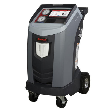 The Robinair 34998 Connected R-134a ACS Machine recovers, recycles, evacuates, leak-tests and recharges R-134a with improved 98.5% efficiency - unmatched be an competitor. The new design features a large 105" capacitive touch LCD display, and automated features including automatic internal refrigerant refill, oil drain and inject, and UV dye inject.