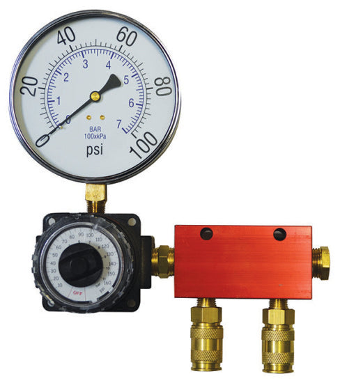 1 - 100 PSI oversized gauge with glass face for easy reading, and the MA500-4 multiport Manifold with quick disconnects